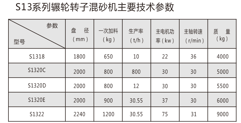 該系列混砂機工作機構由一個輾輪、一個混砂轉子和三個刮板組 成。既保留了輾輪的輾力和搓擦作用,使型砂具有較高的強度,又增 加了混砂轉子強烈的攪拌作用,使型砂強度上升快,混砂周期短,生 產率高,而且砂質松散,透氣性好。本品還采用了彈簧加壓和氣壓加 水等結構,對提高型砂質量和提高生產效率起了重要作用。